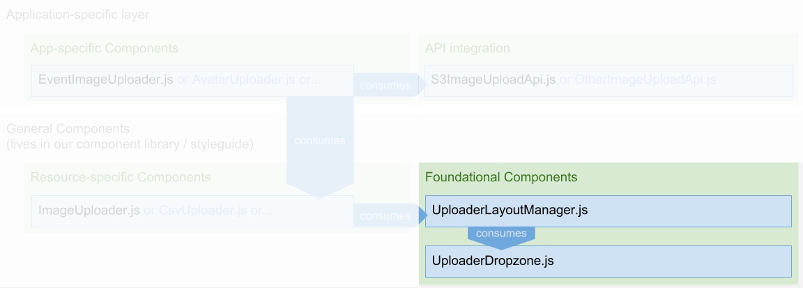 Les partisans de cet outil peuvent se concentrer presque entièrement sur l'aspect visuel de l'uploader. Ce composant conserve très peu de logique puisque les transitions d'état sont gérées par le UploaderLayoutManager. Nous pouvons changer les visuels de façon fluide sans trop nous soucier d'endommager la fonction de l'uploader.