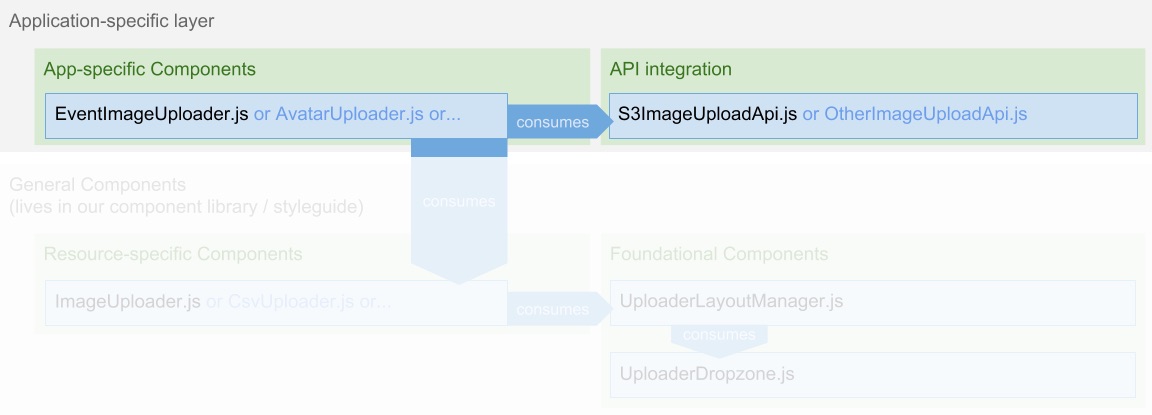 Imagine des téléchargeurs d'images qui ont été conçus pour chaque scénario, mais qui ne contiennent que quelques composants simples faits de balises de présentation. Ils peuvent chacun utiliser la même fonctionnalité de téléchargement si cela a du sens, mais avec une présentation totalement différente. Ou inverser cette idée, en utilisant les mêmes visuels de téléchargement mais avec des interfaces API totalement différentes.